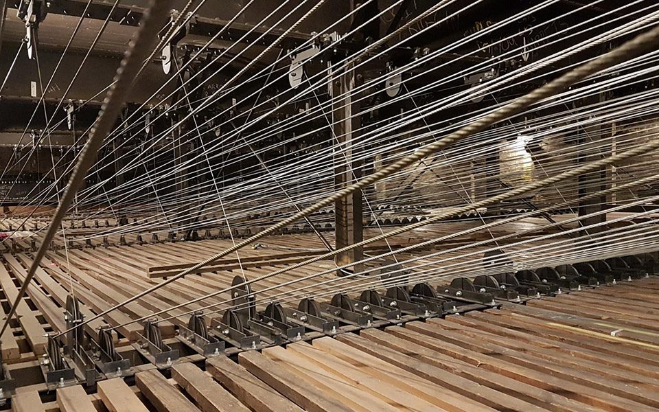 High above the stage, the grid holds the lighting and scenery that bring every show to life.